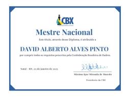 David Alberto Alves Pinto (MT), recebe o titulo de Mestre Nacional, cumpriu todos os requisitos e em breve receberá o diploma e também fará parte da página de Titulados