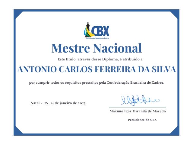 Antonio Carlos Ferreira da Silva (PE) Novo Mestre Nacional