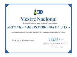 Antonio Carlos Ferreira da Silva(PE) recebe o título de Mestre Nacional, cumpriu todos os requisitos e em breve receberá o diploma e também fará parte da página de Titulados