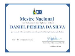 Daniel Pereira da Silva (SP), recebe o título de Mestre Nacional, cumpriu todos os requisitos e em breve receberá o diploma e também fará parte da página de Titulados