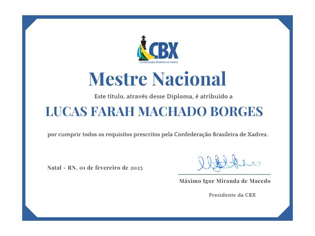 Lucas Farah Machado Borges (GO) Novo Mestre Nacional